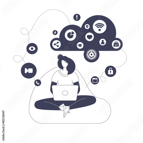 Panda eating bamboo vector. Cute bear sitting chewing green leaves icon. Kawaii happy wild animal isolated on white background