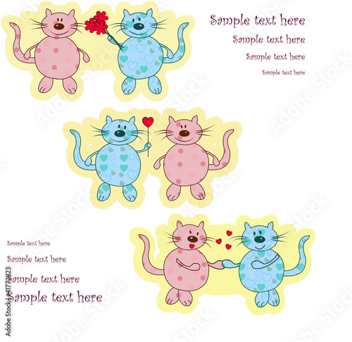 Vector set of cards with cute pet animals and handwritten inspirational quotations. Funny cats, dogs and hamsters eating their favourite food fish, sausages, canned food, cheese.