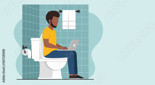 Cute kitten on toilet bowl, flat vector illustration. Cat toilet training.
