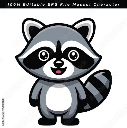 Cute raccoon with heart vector. Funny woodland animal character fall in love cartoon icon illustration isolated on white background