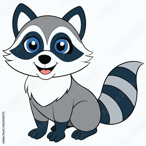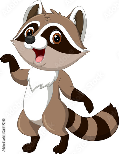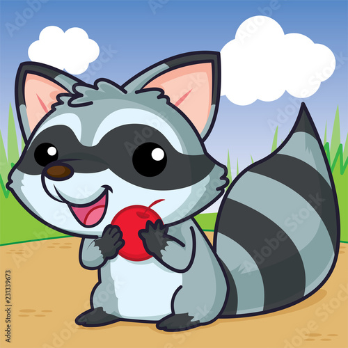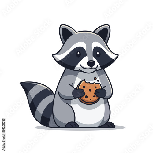 Cute raccoon vector. Funny woodland animal character carrying sweet cake in paw cartoon icon illustration isolated on white background. Happy birthday greeting