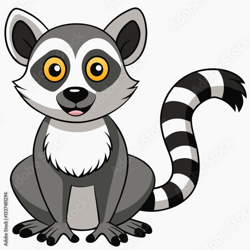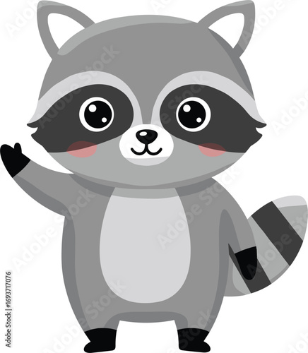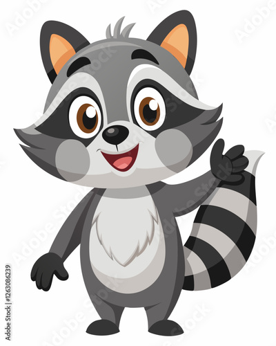 Cute raccoon vector. Funny woodland animal happy smiling cartoon icon. Playful, joyful, overjoyed character illustration isolated on white background