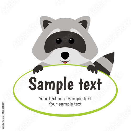 Cute raccoon vector. Funny woodland animal character holding greeting placard cartoon icon illustration isolated on white background
