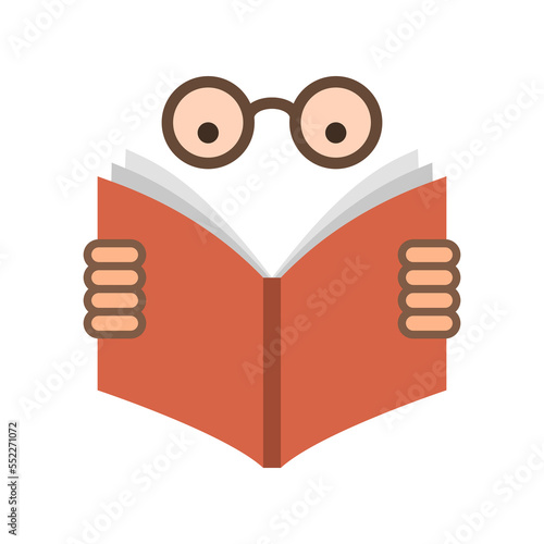 Cute sloth vector. Cartoon animal reading story book icon. Funny smart baby forest character in eyeglasses with fairytale isolated on white background