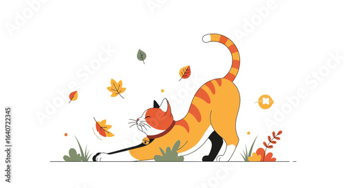 Cute small squirrel jumping on tree branch flat cartoon vector. Happy forest rodent with bushy tail on sprig illustration isolated on white background. Adorable funny wild animal on twig icon