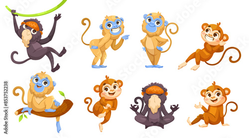 Cute squirrel cartoon character set, flat vector isolated illustration. Funny animals sleeping, eating acorns, running, playing. Forest wild animals different activities. Emoji, logo, sticker.