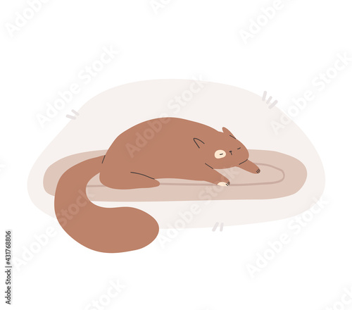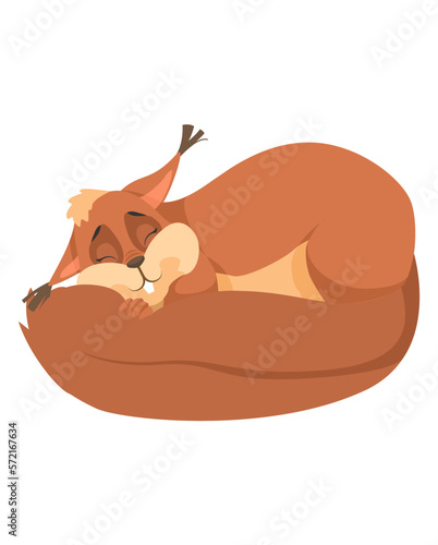 Cute squirrel funny character sleep and rest vector. Adorable wildlife mascot fluffy rodent with furry tail isolated on white background