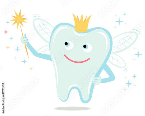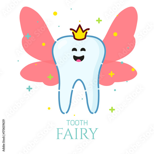 Cute tooth fairy vector icon isolated on white background