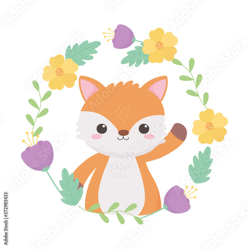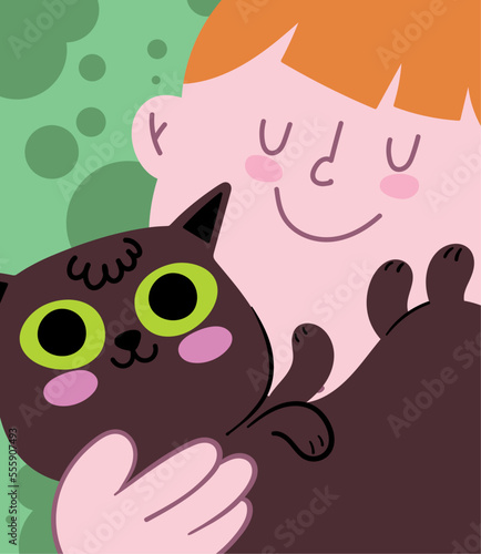 Cute vector spring cat with flower. Cartoon funny kitten animal icon illustration for greeting card design. Happy pet and nature isolated on white background