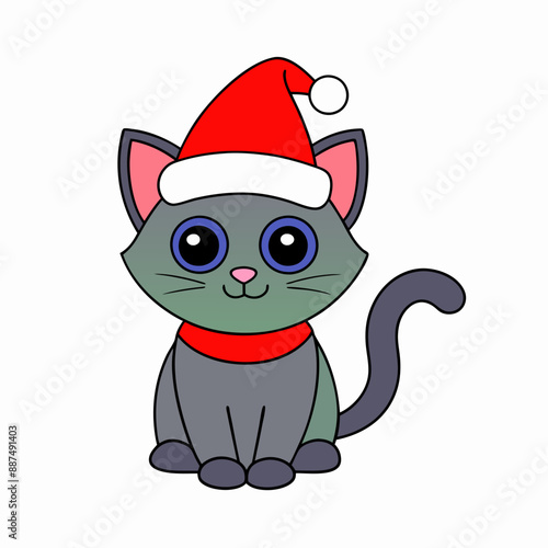 Winter cat in scarf and hat vector. Cute pet animal icon illustration. Kitten character in funny knitted wear for Christmas, New Year holiday greeting season card doodle design isolated on white background
