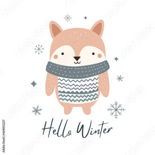 Winter cat in warm sweater and hat vector. Cute pet animal icon illustration. Funny kitten character walking. Doodle design for greeting cold season card isolated on white background