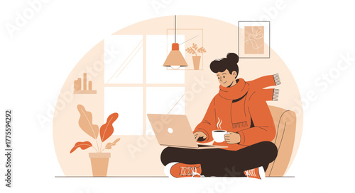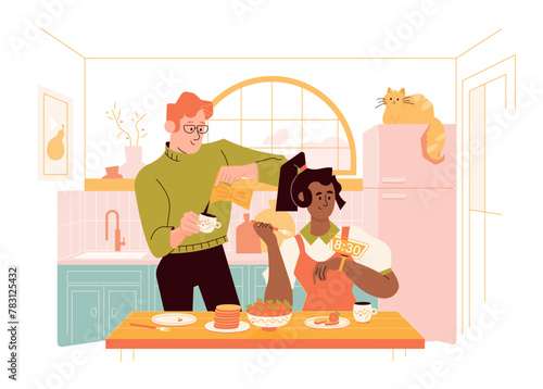 Daily life. Young woman doing makeup in the morning, flat vector illustration. Daily morning routine, everyday activities, beauty habits.