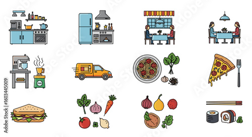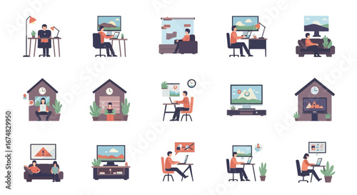 Daily life routine vector scene. Woman character day schedule isolated illustration set. Female person wake up, having breakfast, doing sport, walking dog, rest and work