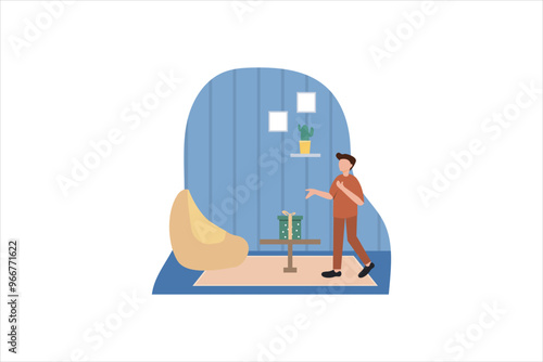 Daily life. Young man and woman commuting to and from work, flat vector illustration. Passengers in metro train. Daily morning, evening routine, everyday activities.