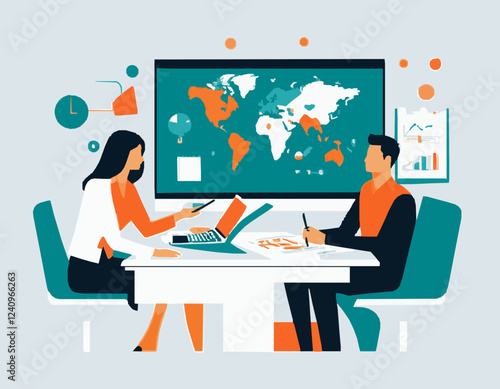 Vector illustration of businessman and businesswoman making a great deal and shaking hands. Deal concept design element in flat style.