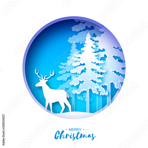 December, January and February winter season months. Christmas tree, reindeer, Valentines Day pink hearts, vector illustration in paper art style. Winter holidays composition set for calendar, card.