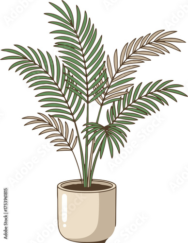 Decorative palm tree in pot vector icon isolated on white background
