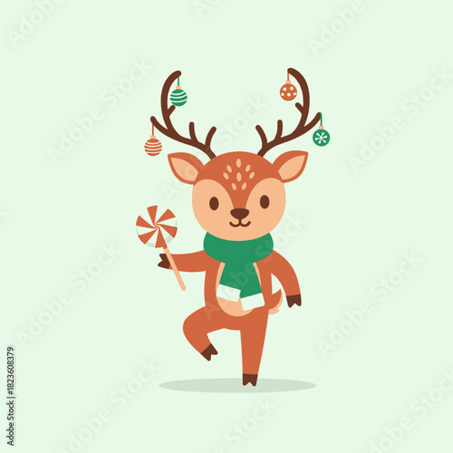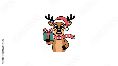 Deer cute pilot animal cartoon vector icon. Reindeer funny character flying on plane isolated on white background. Doodle design for postcard