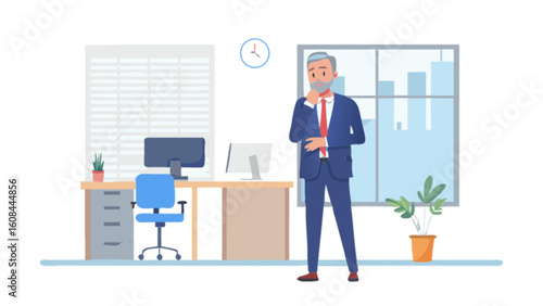 Vector illustration of postal worker parcel packer. Delivery people concept flat style design element, icon isolated on white background.