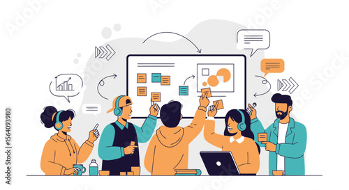 Delivery service people cartoon character set, flat vector illustration. Woman operator of call center. Delivery man, loader with hand truck full of cardboard boxes. Shipping logistics transportation.