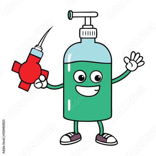 Dentist services concept vector flat illustration. Hand holding toothbrush with toothpaste, mouthwash, healthy tooth, first aid kit, dentist tools. Dental care and teeth health poster, banner.