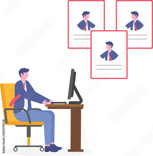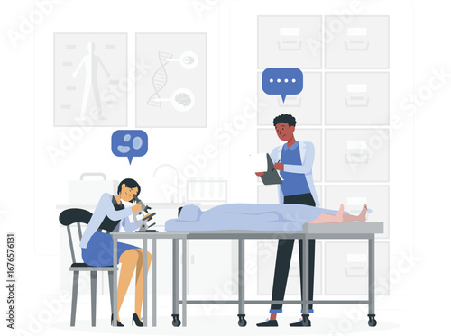 Vector illustration of doctor male dermatologist examining his patient. Medical practitioner flat style design element, icon isolated on white background.