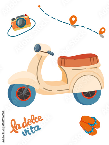 Detective services vector flat illustration. Magnifying glass, eye, moustache, hat, handcuffs, pistol, smoking pipe compass and evidence. Spy equipment, accessories for web banner, website page