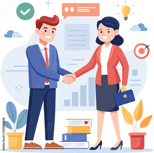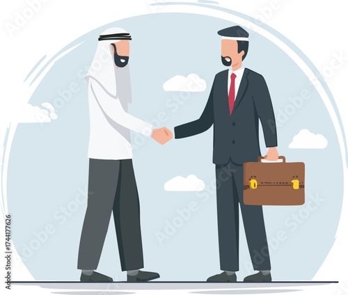 Devil deal concept vector illustration. Two businessmen shaking hands. Businessman making a deal with devil.