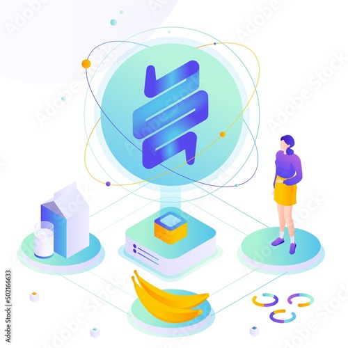 Diet for intestine flora stability vector. Digestive microflora laboratory test, treatment proper and nutrition prescription illustration. Medicine, gastroenterology and healthcare