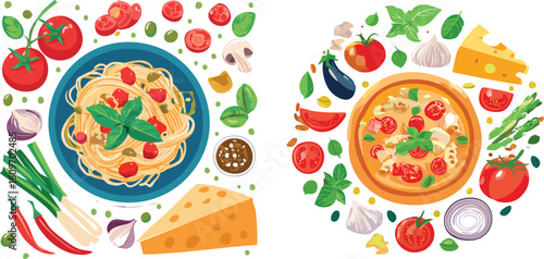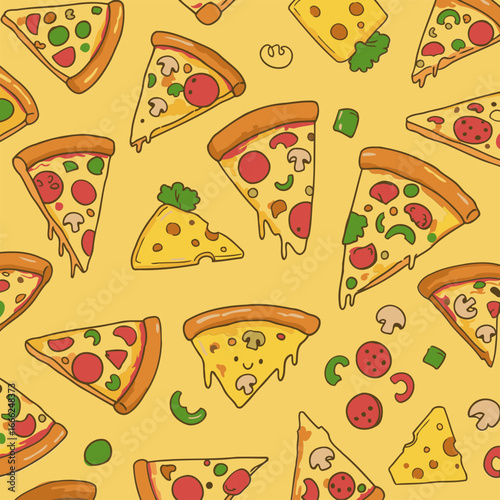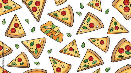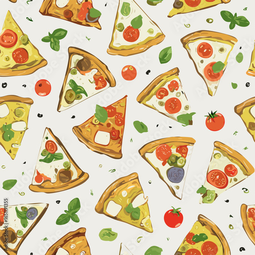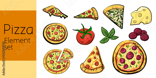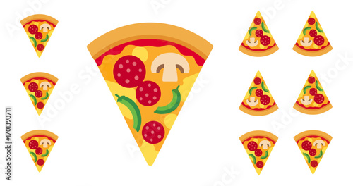 Different italian pizza slices vector illustration. Fastfood restaurant, pizzeria or cafe menu design template. Vegetarian and traditional snack for lunch or dinner