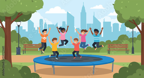 Different people walking, riding eco-friendly transport, training in park vector illustration. Active adults and kids enjoying leisure activities on weekend vacation at urban recreation area