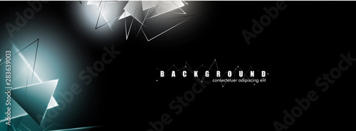 Vector polygonal art group of flying paper planes, one of them is changing direction. Low poly wireframe mesh with light effects. Different thinking concept poster banner template with copy space.