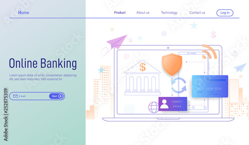 Digital signature landing page design, website banner template, flat vector illustration. Usb key token and smartphone with pen and money. Digital document signing.