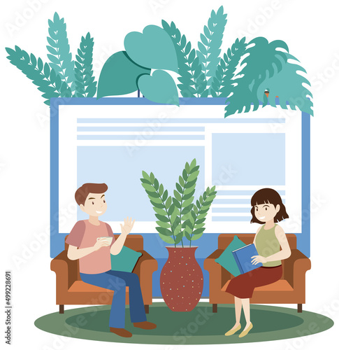 Vector illustration of students having lunch break. Dinner concept design element in flat style.