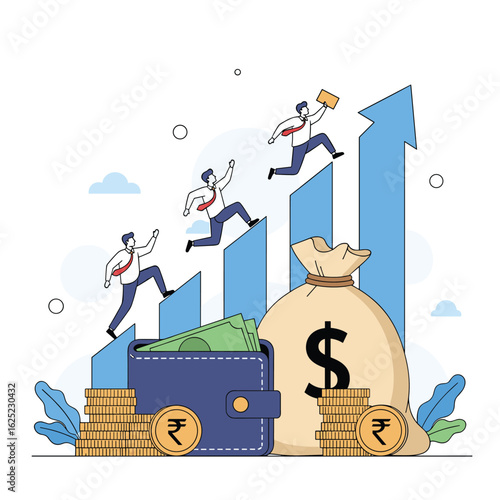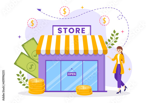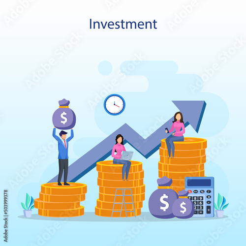 Diploma, graduation hat, piggy bank with money, woman working on laptop sitting on dollar coin stack, flat vector illustration. Student loan, saving money for education, scholarship.