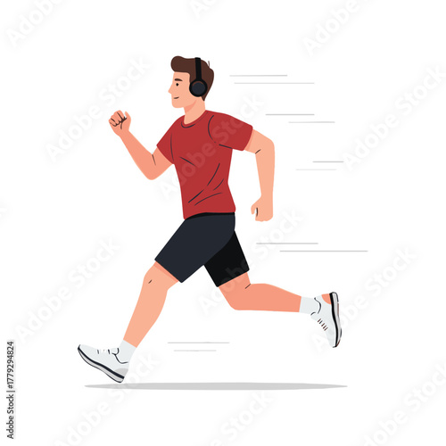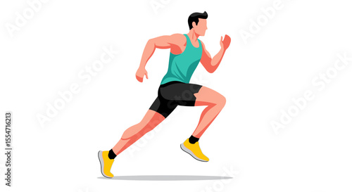 Disabled man runner with prosthetic leg vector. Isometric amputee male athlete with artificial limb prosthesis jogging. Handicapped people healthy lifestyle and sport isolated on white background