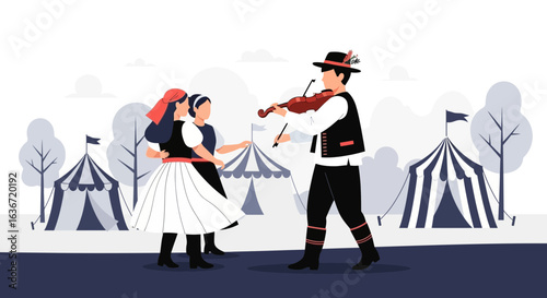 Disabled people conquering mountain peak, vector flat illustration. Path to success concept. Happy male and female characters with disabilities overcoming difficulties and achieving success in life.