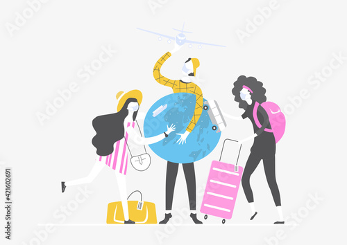 Disco party, vector illustration. Happy people pouring wine while sitting on disco ball, dancing. Nightclub party composition for web banner, website page etc.