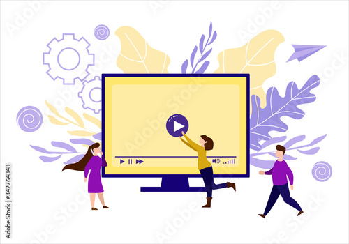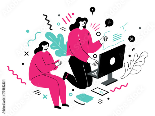 Disco party, vector illustration. Happy people dancing and drinking wine, dj mixing music. Nightclub party, nightlife composition for web banner, website page etc.