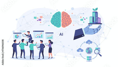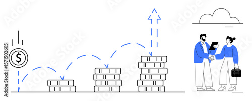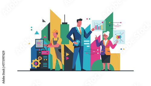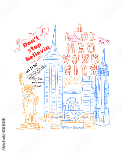 Discover new world vector flat style design illustration. Travel to America concept with traveling couple and New York city skyscrapers with Statue of Liberty for web banner, website page etc.