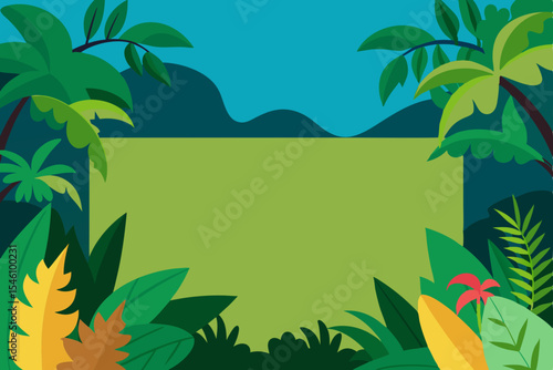 White round display podium, exotic flowers, bamboo, palm tree leaves, vector illustration. Tropical floral background for product advertising poster, banner, flyer etc.