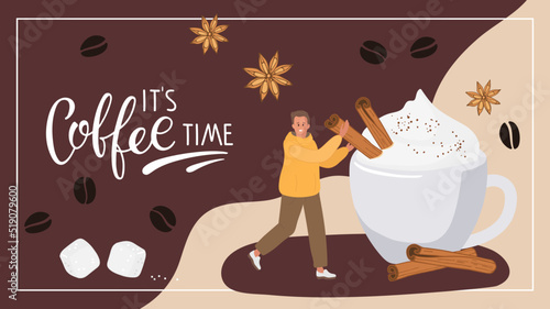 Realistic round display podium, layered paper cut coffee splashes, beans, vector illustration. Coffee background for product advertising poster, banner, flyer etc.