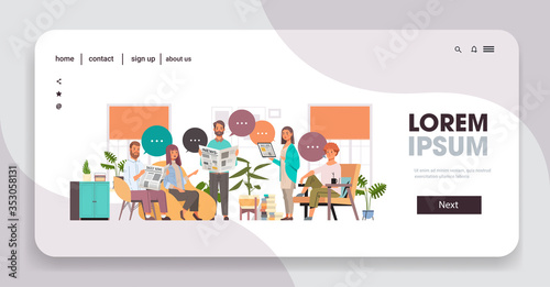 Distance communication. Couple in face masks video calling in public places. Mobile app screens. Vector banner template for website and mobile development. Web site and UI design illustration.