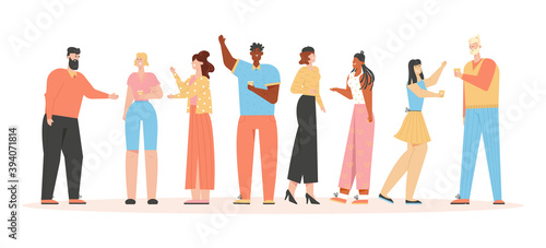 Diverse group of people isolated on white background, vector illustration. People of different race and nations, men and women standing together. Multiethnic and multicultural community.