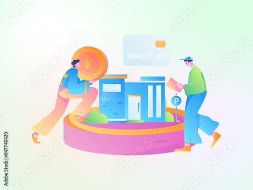 Doctor doing abdominal ultrasound scan to female patient lying on medical bed, flat vector isometric illustration. Ultrasound diagnostics, medical equipment.