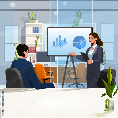 Doctor practitioner, physician male giving medical prescription to patient female sitting at table, flat vector illustration. Doctors appointment, consultation, treatment. Medicine and health care.