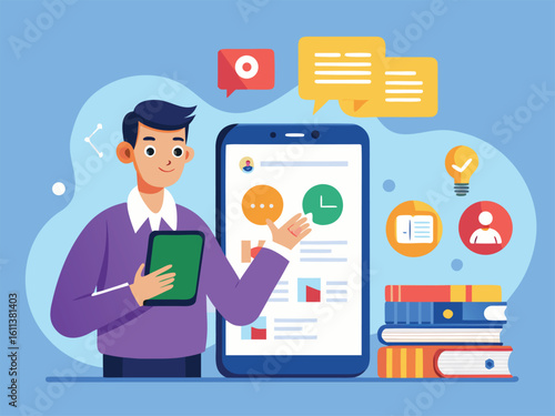 Doctor online vector. Clinic app in mobile phone for medical consultation poster. Video chat with physician illustration. Smartphone service for people disease diagnosis and treatment
