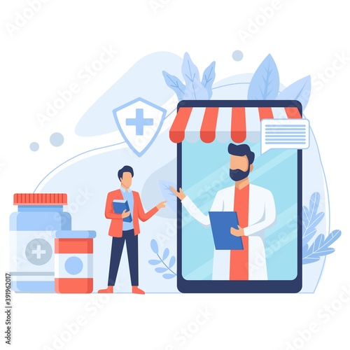 Online doctor consultation on smartphone concept vector isometric illustration. Medical help and advice from home or office.