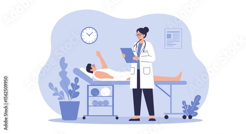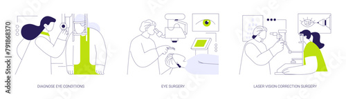 Doctor ophthalmologist checking eyesight, correcting vision and selecting eyeglasses diopter with special equipment set. Professional oculist examining patient vector illustration