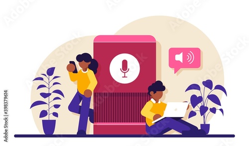 Doctor otolaryngologist cartoon character examining patient ear with otoscope, flat vector illustration. Hearing loss or deaf diagnosis. Hearing aid. Audiology.